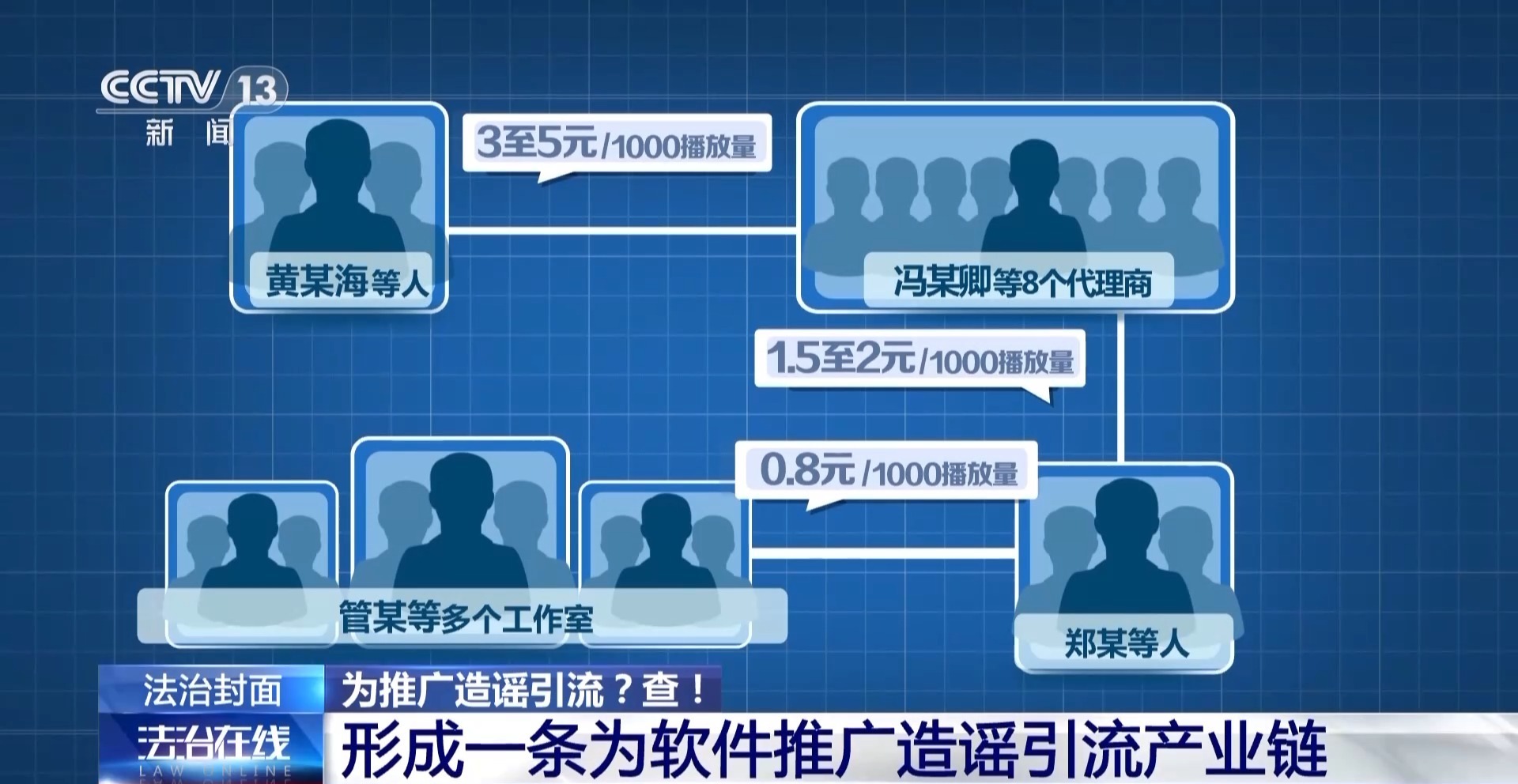 · 黄某海等东说念主以每1000播放量3至5元的价钱招募冯某卿等8个代理商;