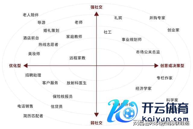 在才略型使命中,电话销售、客户服务、招聘助理等弱酬酢、相通性昭彰的使命,容易被取代,而创意或决议型、强酬酢的使命阻截易取代,比喻创业者、并购大众、社工等;