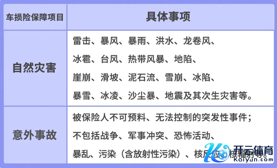 如冰雹、暴雨、大水、地震等当然灾害来袭;外界物体倒塌或陨落、保障车辆行驶中平行陨落;失火、爆炸等事故。