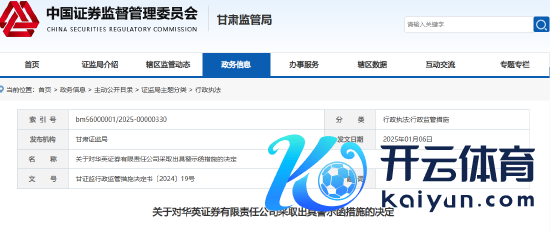 日前,甘肃证监局走漏了一则《对于对华英证券有限遭殃公司遴荐出具警示函门径的决定》的公告。
