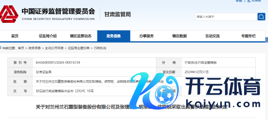 2024年的终末一天,甘肃证监局曾走漏《对于对兰州兰石重型装备股份有限公司及张璞临、胡军旺、武锐锐遴荐出具警示函门径的决定》的公告。