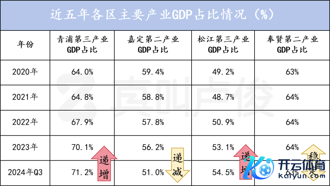 我对比了下几个郊区的主要产业在本区GDP中的占比
