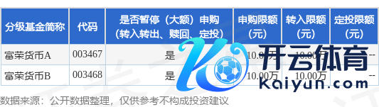 本站音讯开云(中国)Kaiyun·体育官方网站-登录入口,9月27日富荣基金措置有限公司发布《富荣货币市集基金2025年"国庆"假期前暂停部分代销机构大额申购(含提拔转入、按时定额投资)业务的公告》。公告中提醒,为保证本基金的清晰运作,保护基金合手有东谈主利益,自2025年9月29日起富荣货币市集基金2025年"国庆"假期前暂停部分代销机构大额申购(含提拔转入、按时定额投资)业务,申购、提拔转入上限金额为10.0万元,下属分级基金提拔明细如下: